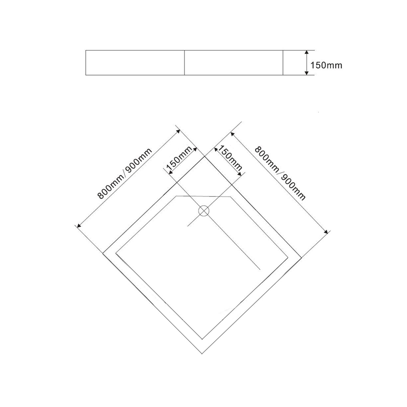 Parametry produktu  Sprchová samonosná vanička akrylátová, čtverec 90x90x15cm