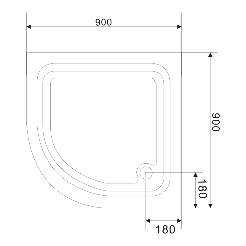 Parametry produktu  Sprchová samonosná vanička akrylátová, čtvrtkruh 90x90x15cm