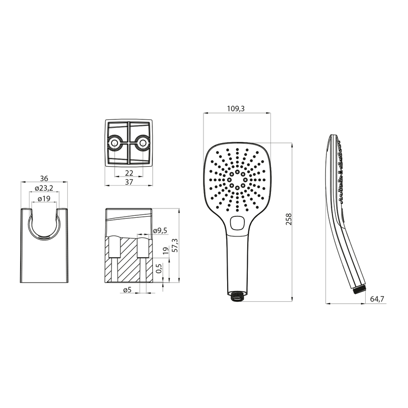 Parametry produktu  Sprchová souprava, 3 režimy sprchování, silikon trysky, pevný držák, hadice 1500mm, černá
