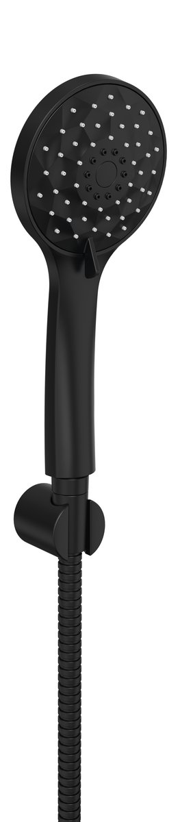 Parametry produktu  Sprchová souprava, 4 režimy sprchování, silikon trysky, pevný držák, hadice 1500mm, černá