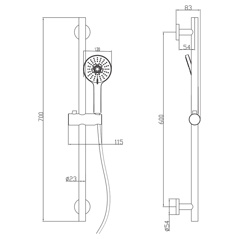 Parametry produktu  Sprchová souprava, posuvný držák 700mm, černá mat