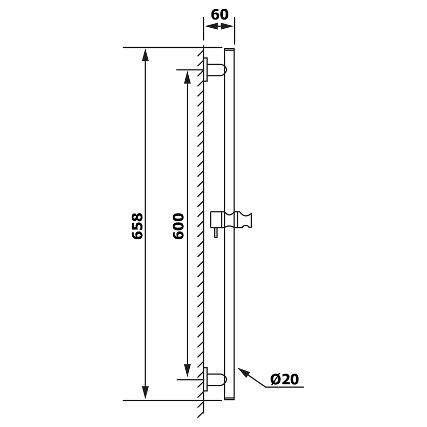Parametry produktu  Sprchová tyč, posuvný držák, kulatá, 660mm, chrom
