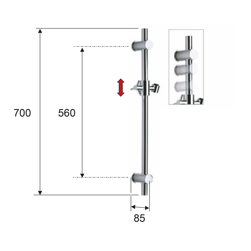 Parametry produktu  Sprchová tyč, posuvný držák, kulatá, 700mm, bílá mat