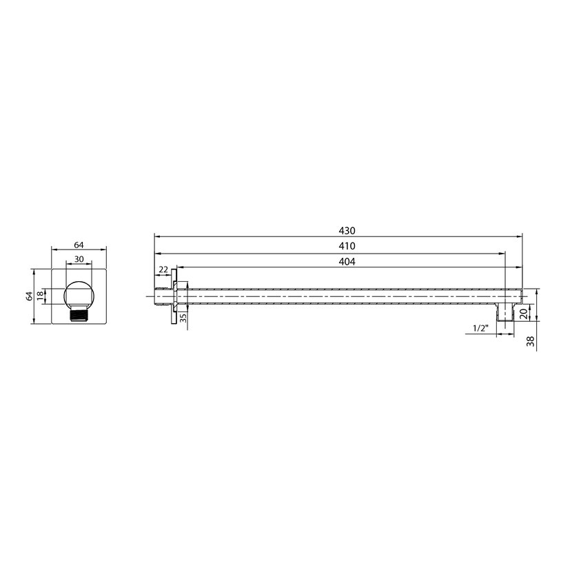 Parametry produktu  Sprchové ramínko hranaté nízké, 400mm, chrom