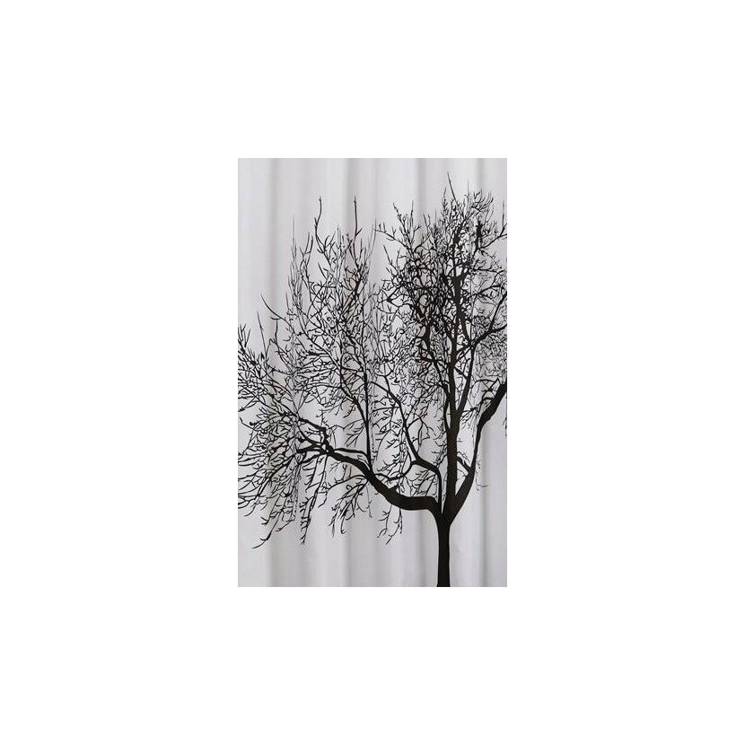 Sprchový závěs 180x200cm, polyester, černá/bílá, strom