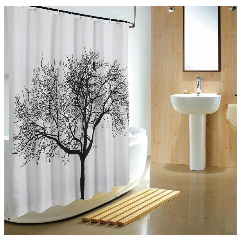 Parametry produktu  Sprchový závěs 180x200cm, polyester, černá/bílá, strom
