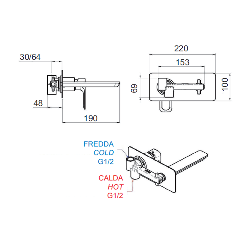Parametry produktu SPY podomítková umyvadlová baterie, chrom