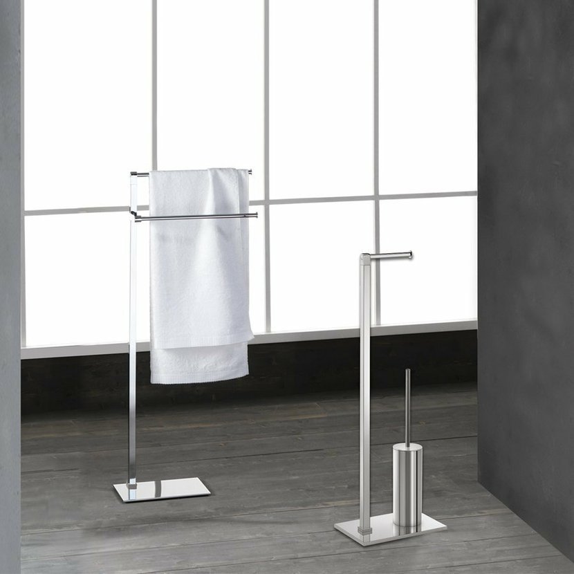 Stojan s držákem na toaletní papír a WC štětkou, hranatý, chrom