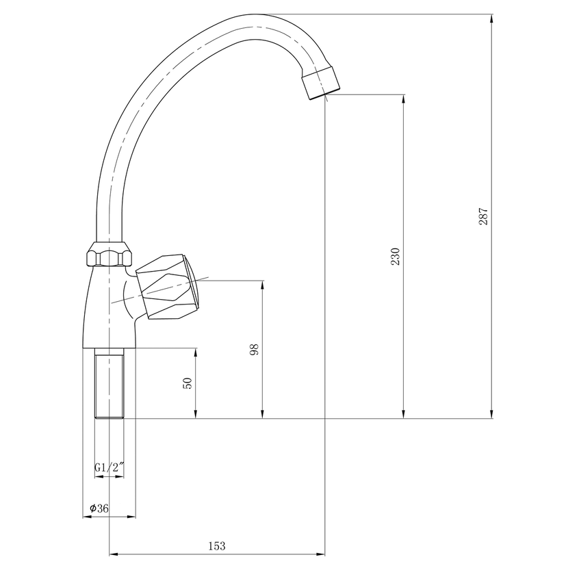 Parametry produktu  Stojánkový ventil 1/2", otočná hubice, chrom