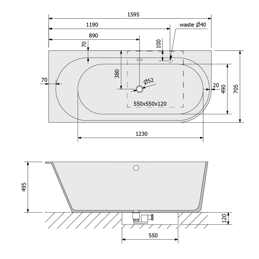 Parametry produktu  SUSSI L rohová stojící vana, litý mramor 160x70x49,5cm, černá/bílá