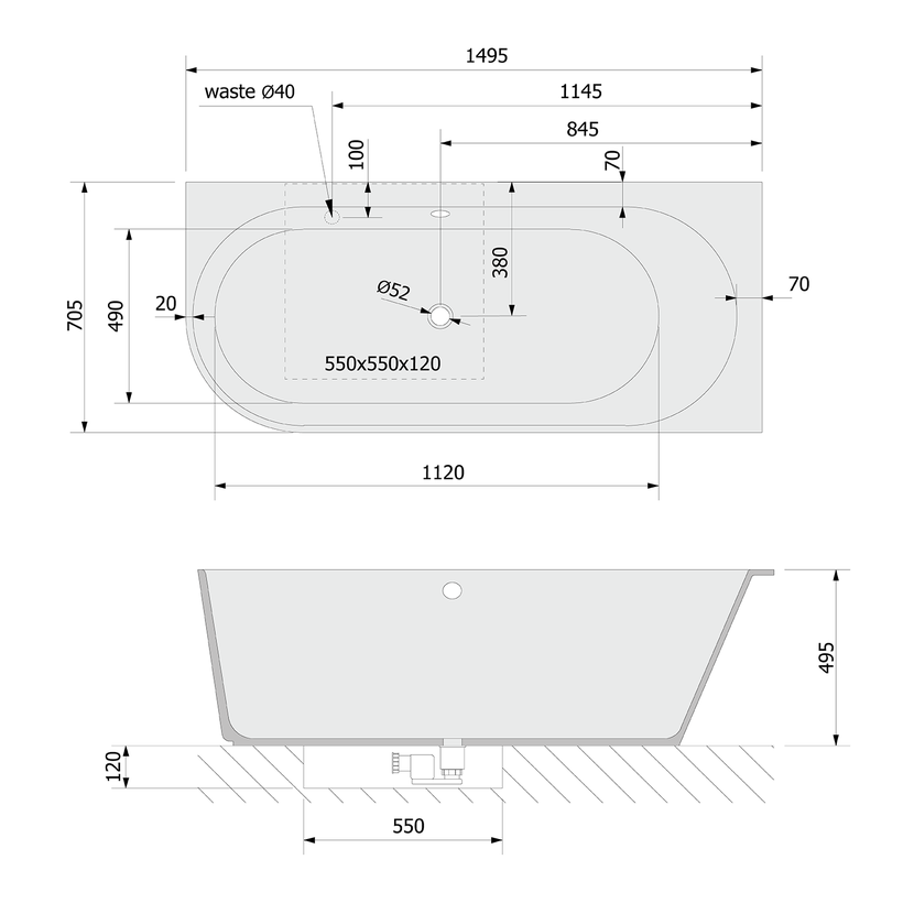 Parametry produktu  SUSSI R rohová stojící vana, litý mramor 150x70x49,5cm, bílá