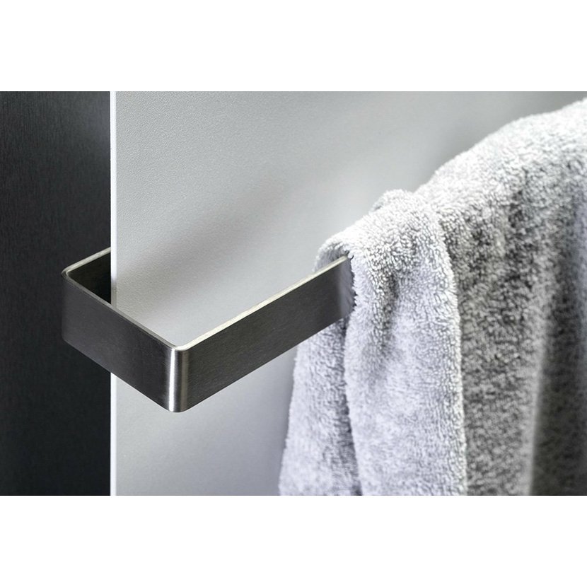 Topné těleso doporučujeme doplnit o praktické držáky ručníků z broušené oceli, které jsou k dokoupení