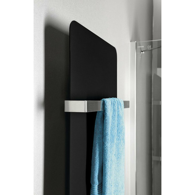 Topné těleso doporučujeme doplnit o praktické držáky ručníků z broušené oceli, které jsou k dokoupení