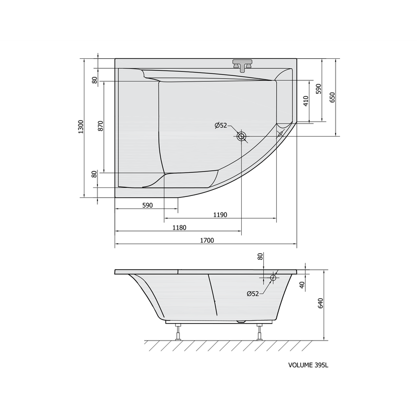 Parametry produktu  TANDEM L asymetrická vana 170x130x50cm, bílá