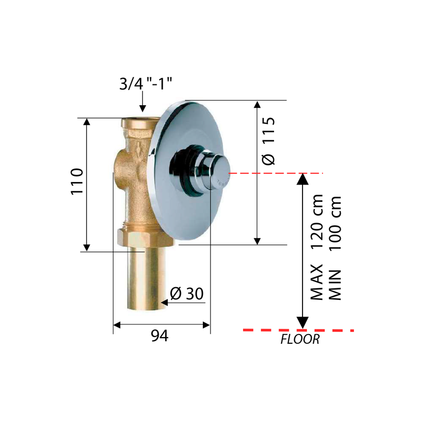 Parametry produktu  TEMPOR samouzavírací podomítkový WC ventil, chrom