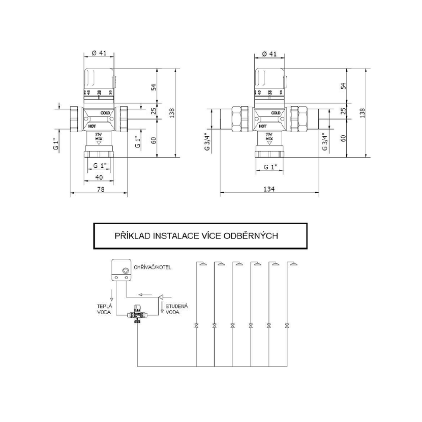 Parametry produktu  Termostatický regulátor teploty vody, 1", pro 4 až 8 odběrných míst, chrom