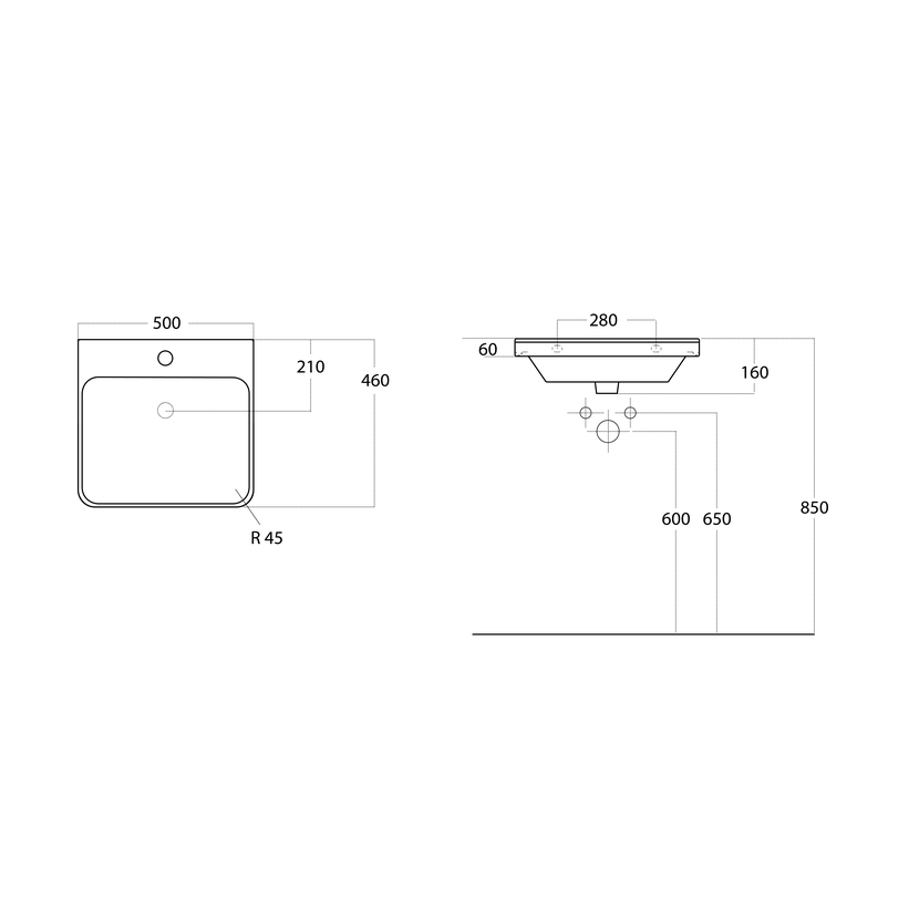 Parametry produktu THALIE 50 keramické umyvadlo nábytkové 50x46cm, bílá