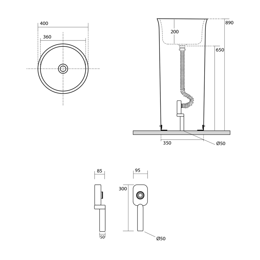 THE NEW YORKER keramické umyvadlo volně stojící, 40x89x40cm, bílá