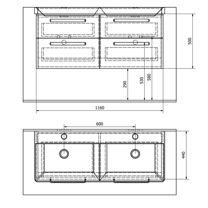 Parametry produktu THEIA dvojumyvadlová skříňka 116x50x44,2cm, 4xzásuvka, borovice rustik