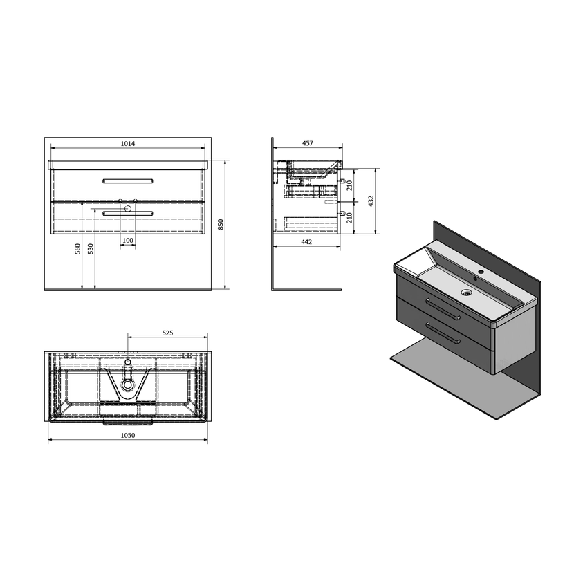 Parametry produktu THEIA umyvadlová skříňka 101,4x43,5x44,2cm, 2xzásuvka, bílá