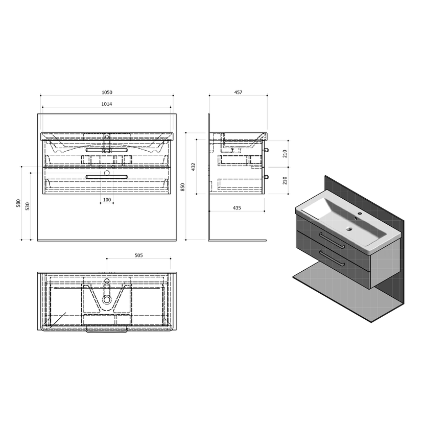 Parametry produktu THEIA umyvadlová skříňka 101,4x43,5x44,2cm, 2xzásuvka, borovice rustik