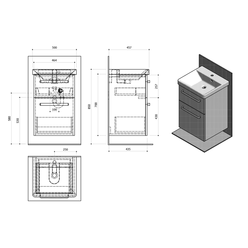 Parametry produktu THEIA umyvadlová skříňka 46,4x70x44,2cm, 2xzásuvka, dub stříbrný