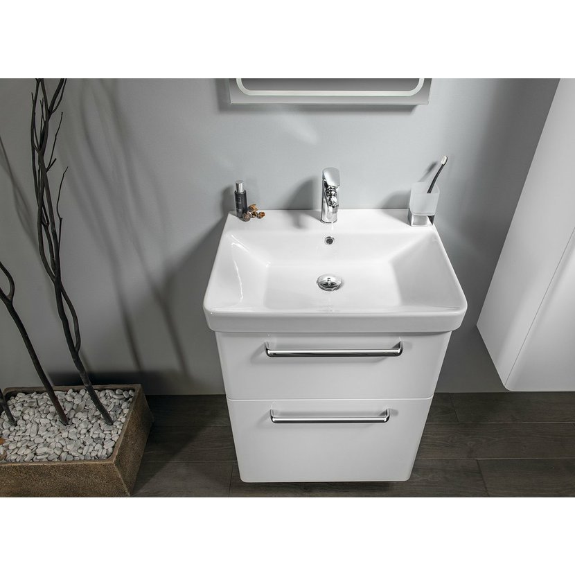Moderní linie skříněk řady THEIA ladí s keramickými umyvadly THALIE vytváří spolu zajímavý celek. Skříňky a zásuvky jsou opatřeny elegantní úchytkou. Zásuvky jsou vybaveny značkovými pojezdy BLUM® s doživotní zárukou, dvířka jsou vybavena panty s tlumeným dovřením. Na výběr je zásuvkové nebo dvířkové provedení umyvadlových skříněk v lesklé bílé a ve vybraných dekorech lamina.