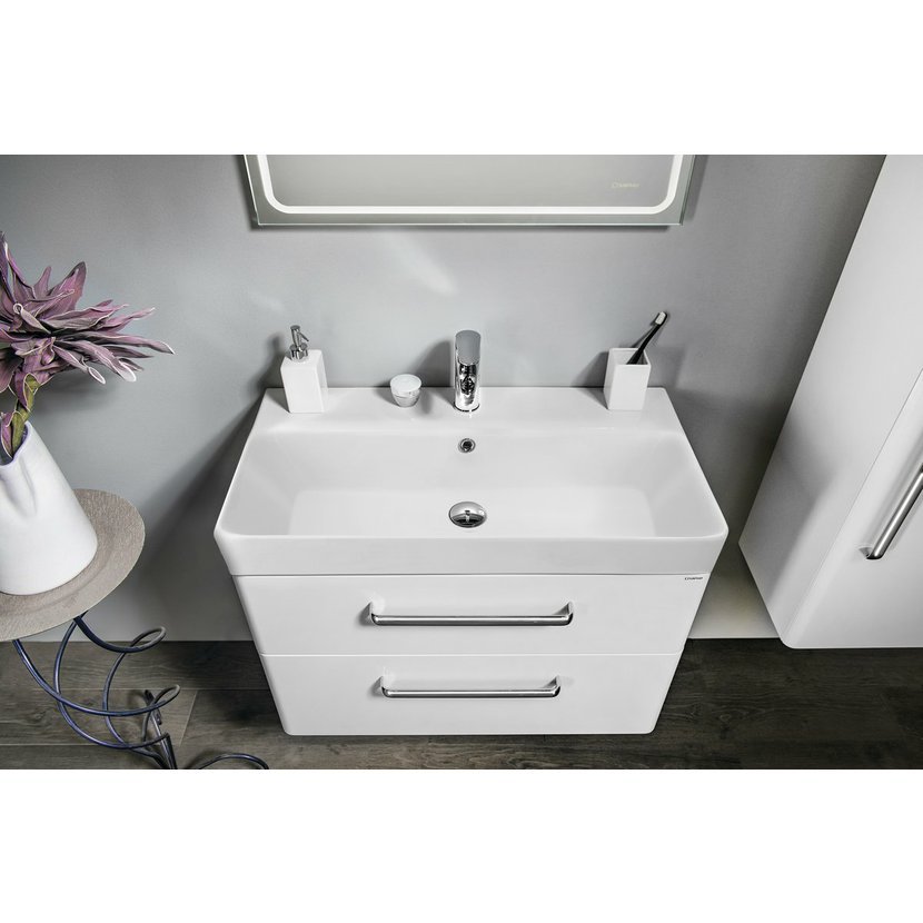 Moderní linie skříněk řady THEIA ladí s keramickými umyvadly THALIE vytváří spolu zajímavý celek. Skříňky a zásuvky jsou opatřeny elegantní úchytkou. Zásuvky jsou vybaveny značkovými pojezdy BLUM® s doživotní zárukou, dvířka jsou vybavena panty s tlumeným dovřením. Na výběr je zásuvkové nebo dvířkové provedení umyvadlových skříněk v lesklé bílé a ve vybraných dekorech lamina.