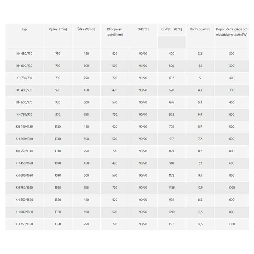 Parametry produktu Thermal Trend KH 750 x 1690 koupelnový radiátor