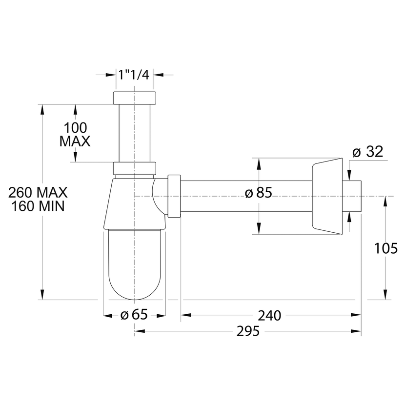 Parametry produktu  THERMOTRAP umyvadlový sifon, 5/4", odpad 32 mm, ABS/chrom