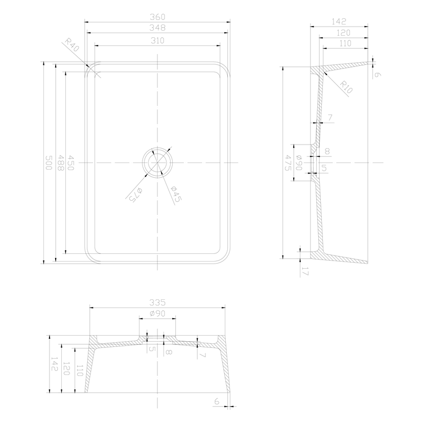 Parametry produktu THIN umyvadlo na desku, Rockstone, 50x37 cm, bílá mat
