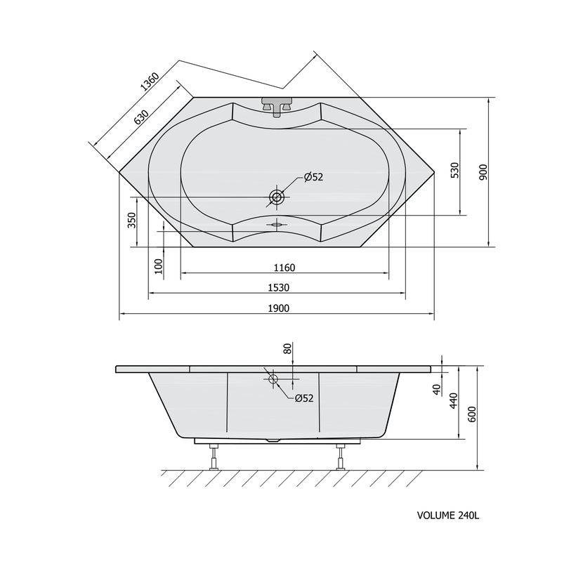 Parametry produktu TOKATA akrylátová vana 136x136x44cm, bílá