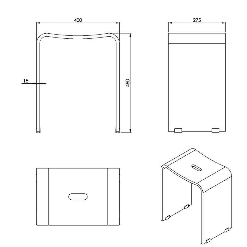 Parametry produktu  TRENDY koupelnová stolička 40x48x27,5cm, čirá