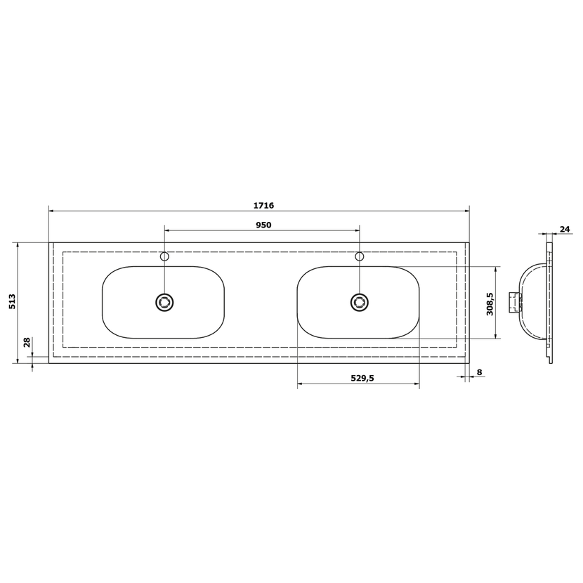 Parametry produktu  TREOS dvojumyvadlo 171,6x51,3 cm (75+20+75), rockstone, bílá mat