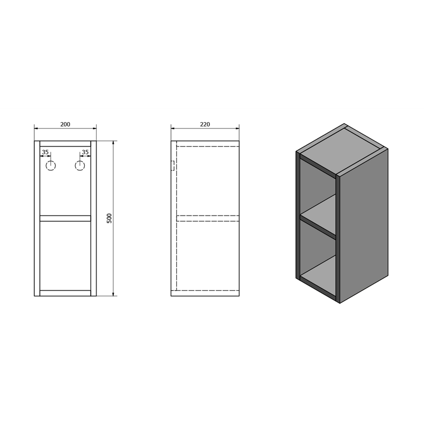 Nábytek je dodáván ve smontovaném stavu, připraven k okamžité instalaci. Nábytek instalujte na rovnou stěnu.