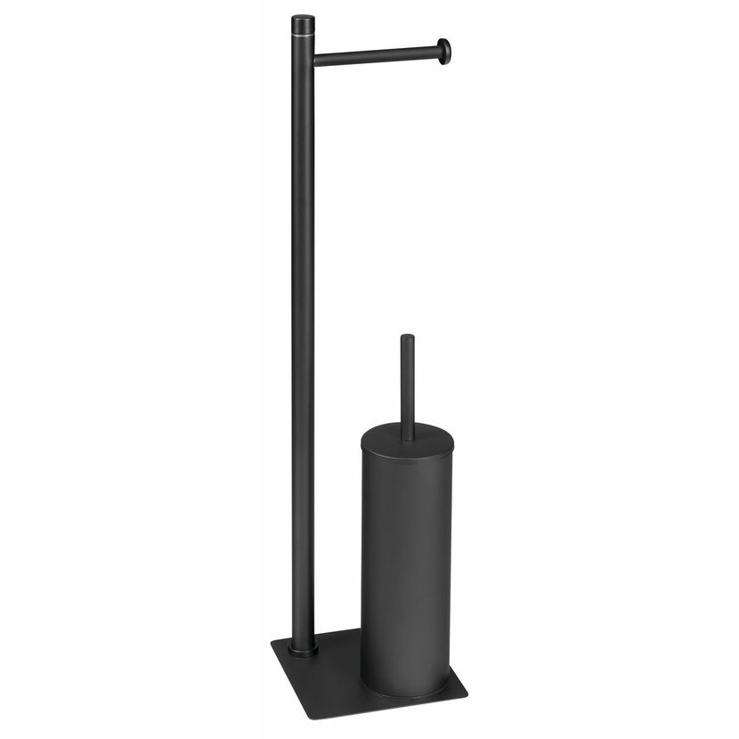 TRILLY stojan s držákem na toaletní papír a WC štětkou, hranatý, černá mat