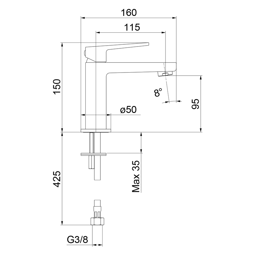 Parametry produktu TURSI stojánková umyvadlová baterie, chrom