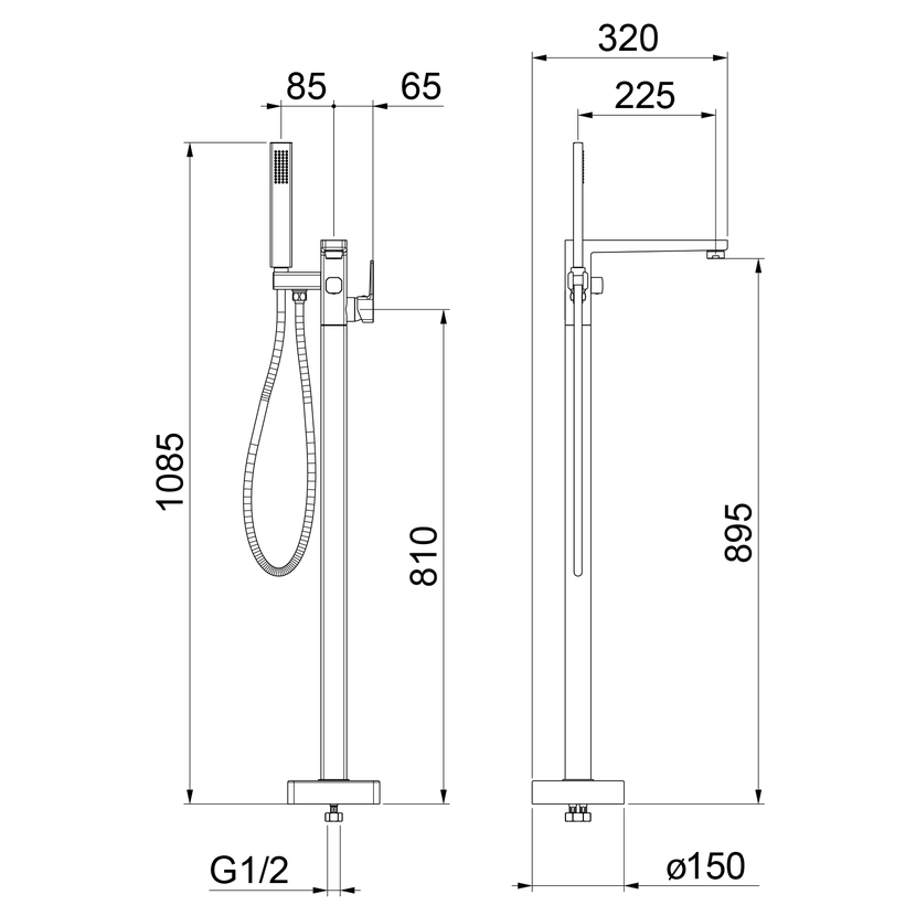 Parametry produktu TURSI vanová baterie s připojením do podlahy, černá mat
