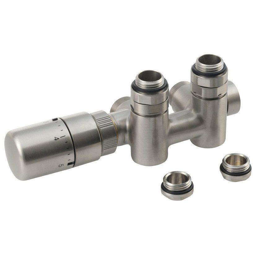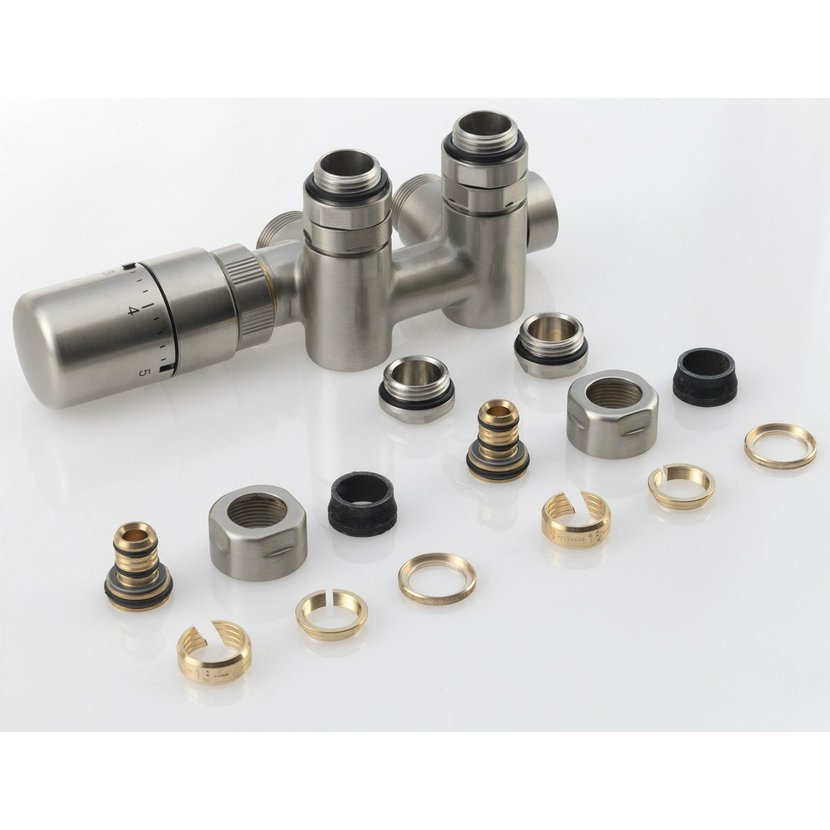 Parametry produktu  TWIN COMBI připojovací sada ventilů termostatická pro střed.připojení, levá, nerez mat