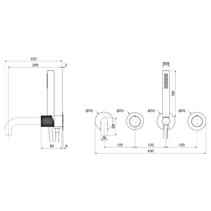 Parametry produktu ULTRATAP podomítková vanová baterie s hubicí a ruční sprchou, 2 výstupy, černá mat/zlato m