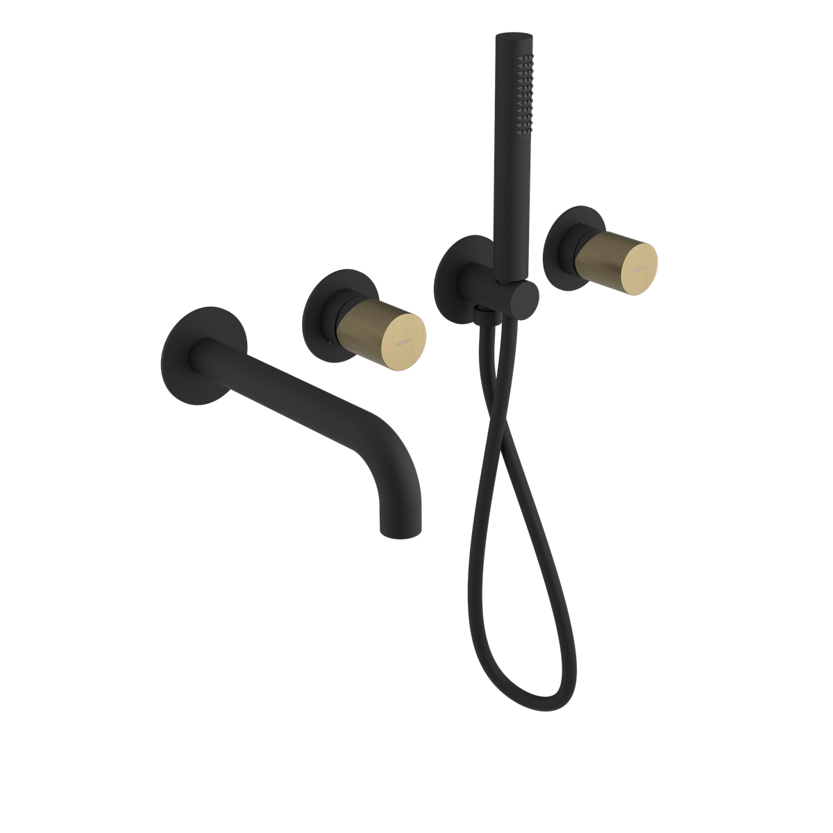 ULTRATAP podomítková vanová baterie s hubicí a ruční sprchou, 2 výstupy, černá mat/zlato m