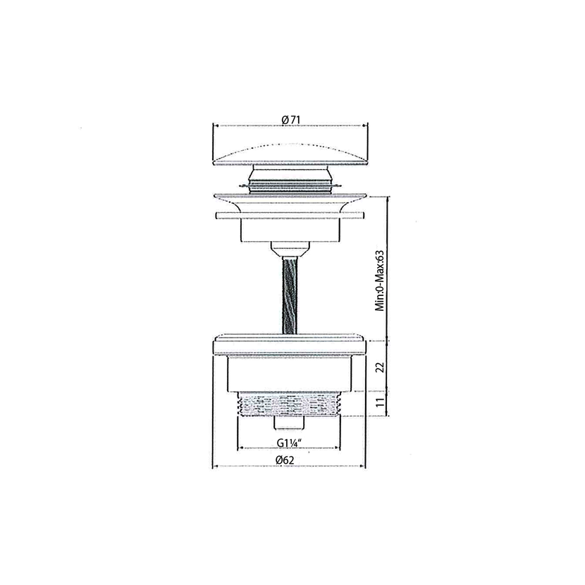 Parametry produktu  Umyvadlová výpust 5/4“, click-clack, keramická zátka, 5-63mm, bílá