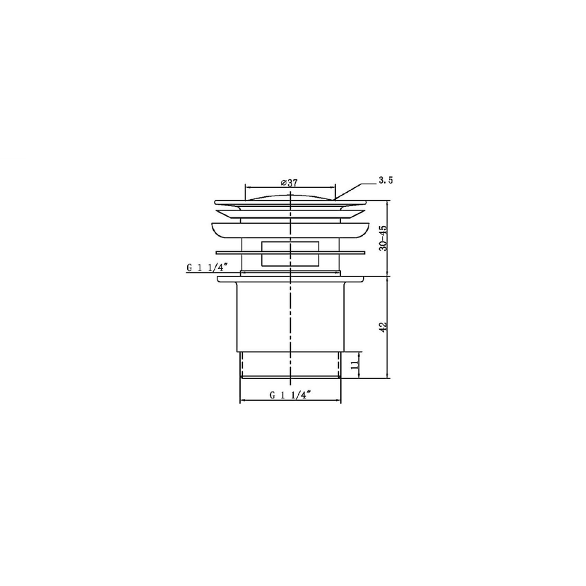 Parametry produktu  Umyvadlová výpust 5/4“, click-clack, malá zátka, 30-45mm, chrom