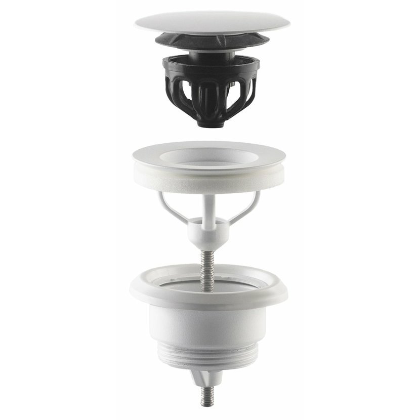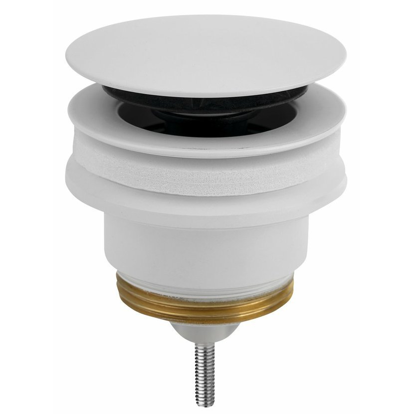Parametry produktu  Umyvadlová výpust 5/4“, click-clack, velká zátka, 10-45mm, bílá mat