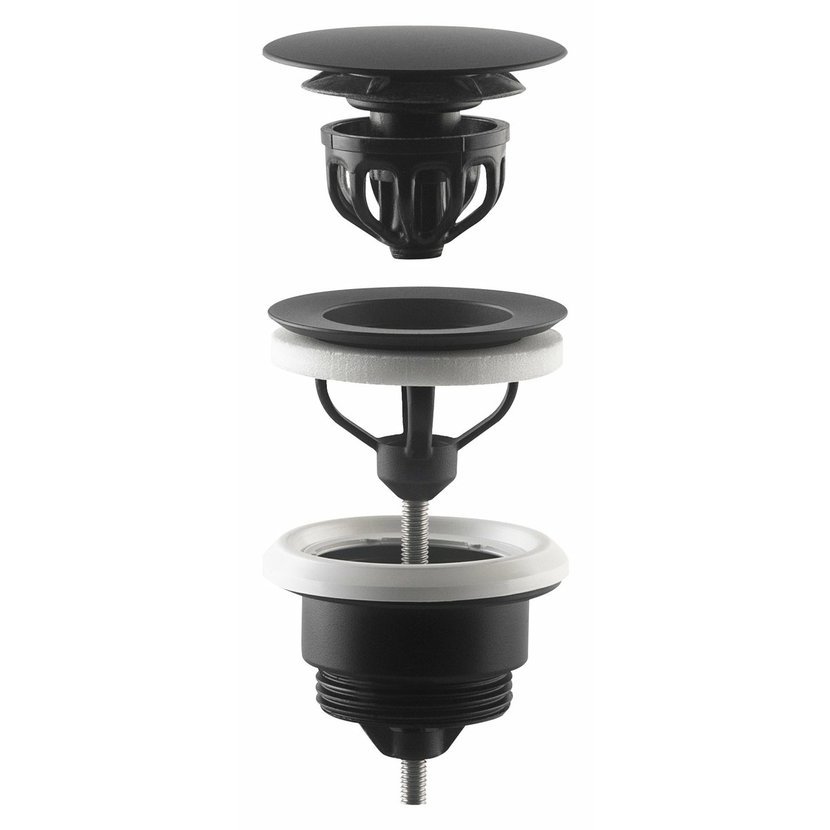 Parametry produktu  Umyvadlová výpust 5/4“, click-clack, velká zátka, 10-45mm, černá mat