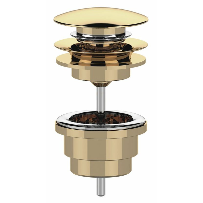 Parametry produktu Umyvadlová výpust 5/4“, click-clack, velká zátka, 10-65mm, zlato