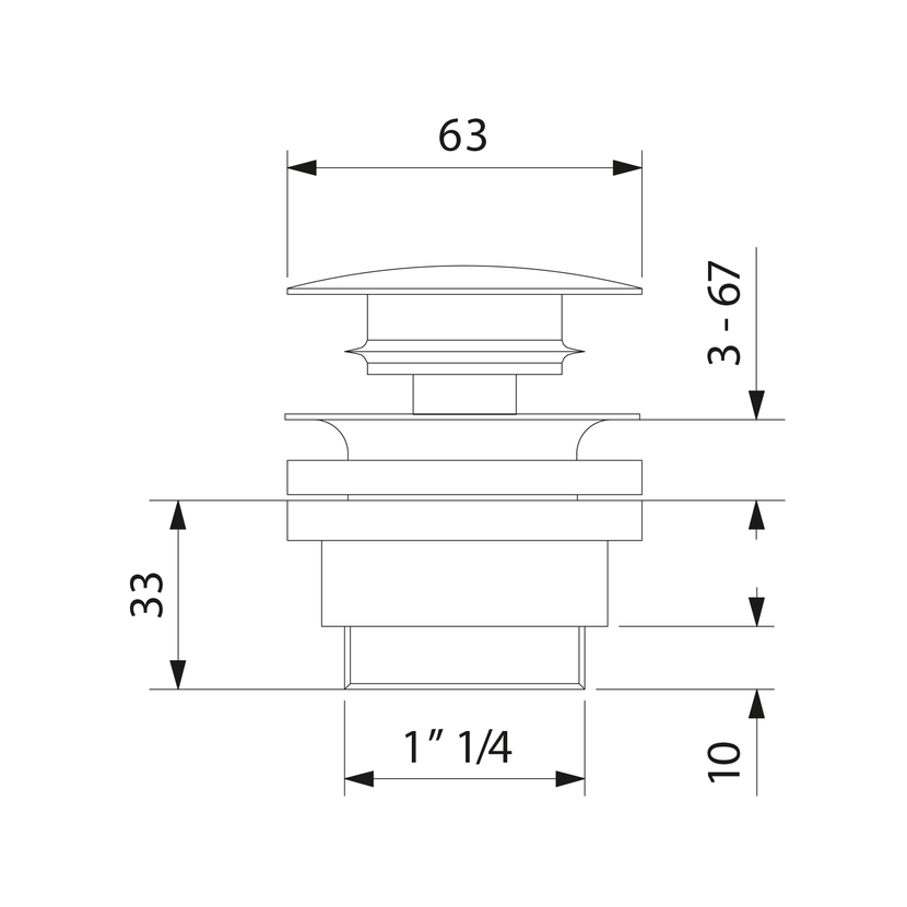 Parametry produktu Umyvadlová výpust 5/4“, click-clack, velká zátka, 5-65mm, keramika bílá