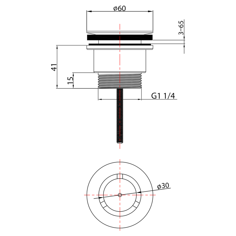 Parametry produktu  Umyvadlová výpust 5/4“, neuzavíratelná, design zátka, 3-65mm, chrom