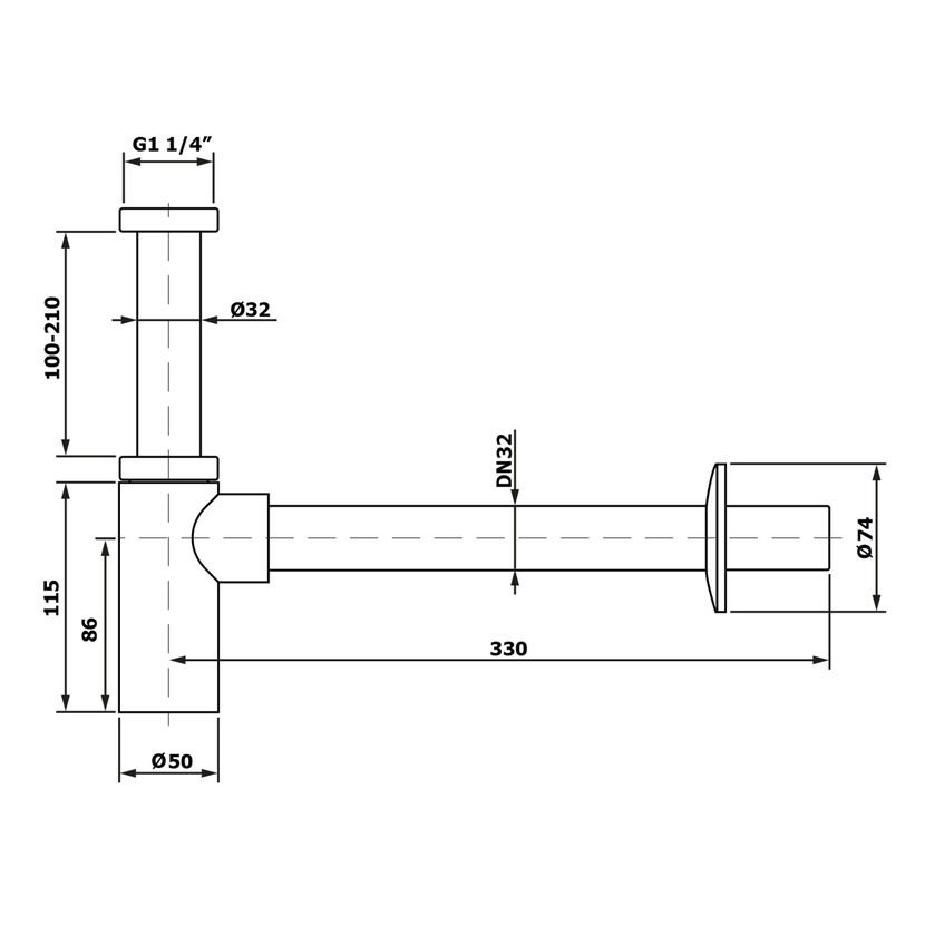 Parametry produktu  Umyvadlový sifon 5/4", DN32, kulatý, chrom