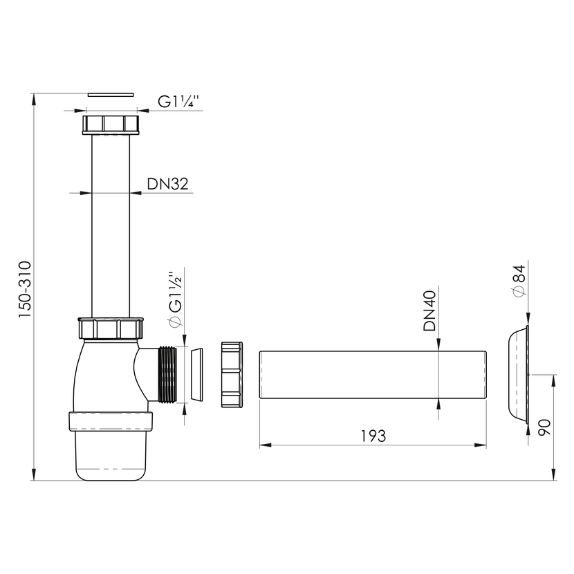 Parametry produktu  Umyvadlový sifon 5/4", DN40, bílá